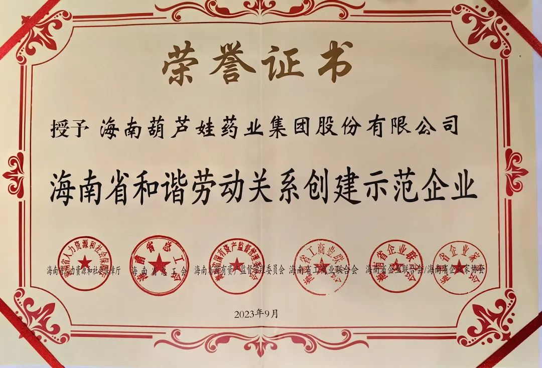 yh86银河国际药业集团获评“海南省和谐劳动关系创建示范企业”